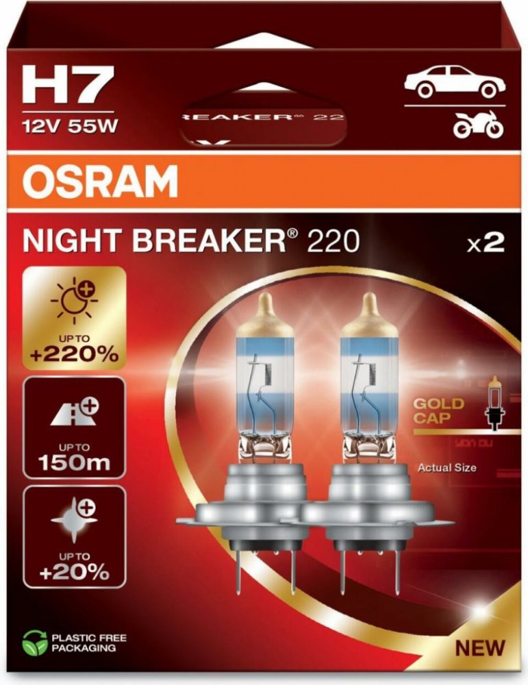 Výrazně lepší osvětlení znamená zvýšenou bezpečnost na cestách. S OSRAM NIGHT BREAKER 220% můžete důvěřovat, že jste vybaveni tím nejlepším, co trh nabízí. Buďte připraveni na všechny výzvy, které vám cesty přinesou.