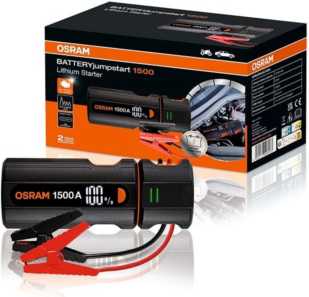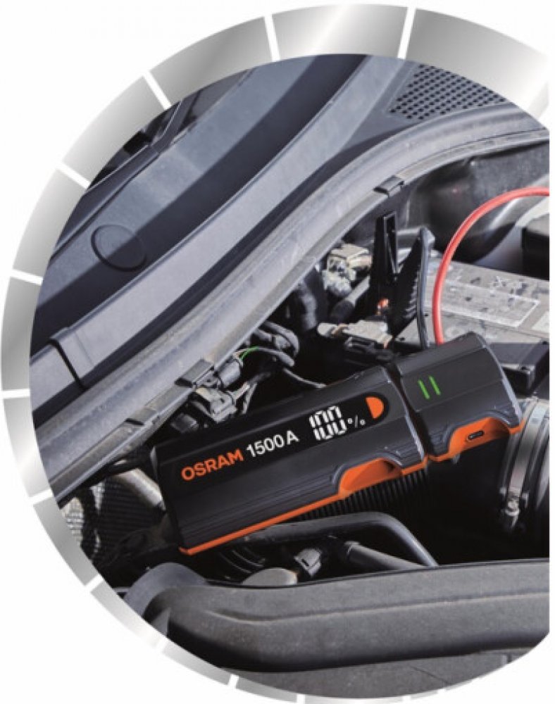 OSRAM je světová jednička v automobilovém osvětlení a elektronice. Spojuje know-how z profesionálního motorsportu s důrazem na bezpečnost a ergonomii. Jump starter BATTERYjumpstart 1500 je navržený pro rychlou a bezpečnou obsluhu, díky které se do cíle dostanete i při nečekaném vybití baterie – a ještě zároveň nabijete svá zařízení.