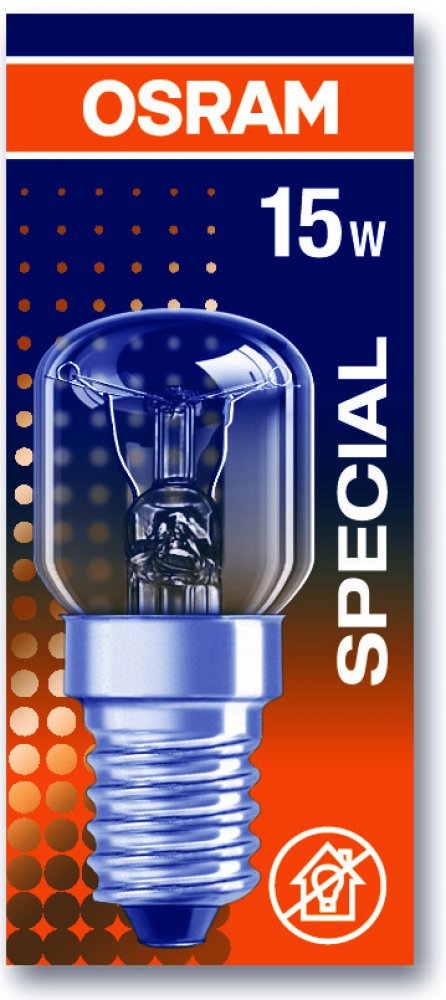 (BAL:1/10/100ks) - E14 15W SPECIAL OVEN 230V žárovka - 85lm, 2700K, 300° do trouby. Rozměry: 22 x 50mm. Jmenovitá životnost: 1000h.Balení: papírová krabička.