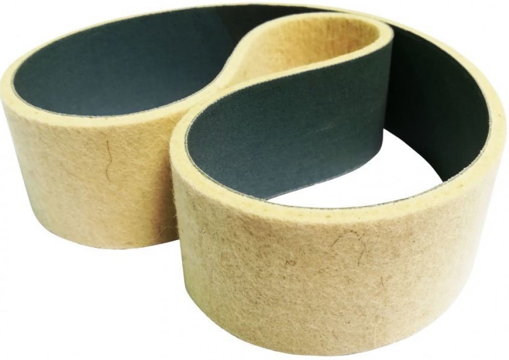 Leštící pás z přírodní plsti na pevném podkladu pro čištění a leštění povrchů pomocí brusných a leštících past. Plstěné pásy se používají k leštění výrobků ze dřeva, plastů a kovových materiálů.