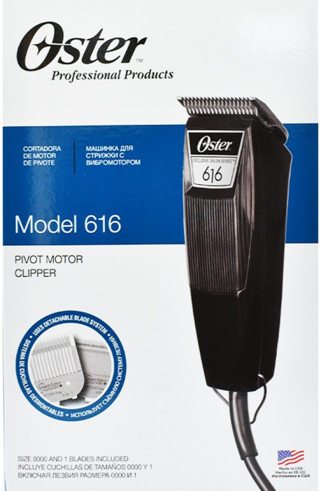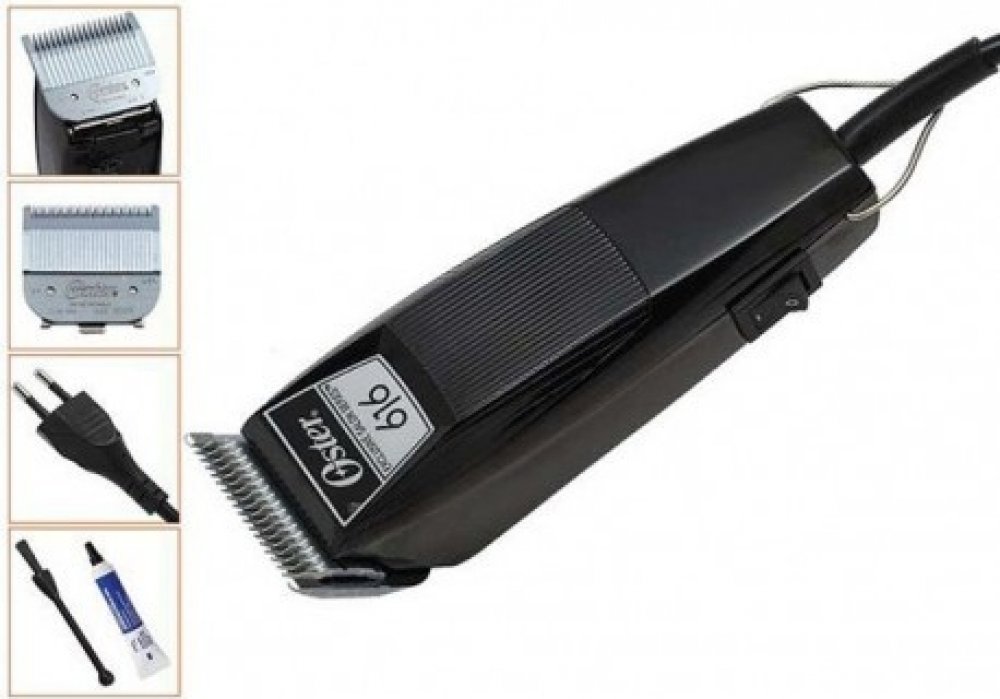 Oster 616 je profesionální stříhací strojek s výměnnými noži. Velmi tichý pivot motor. Síla motoru a mnohostrannost výkonného strojku v dobré ceně. Hmotnost 430 g. Délka napájecího kable 3 m. Ochrana ostří. 5 výměnných nožů. Dodáván se 2 noži - 1/10 mm a 3 mm. Štěteček na čištění a mazací olej Oster Blade Lube.