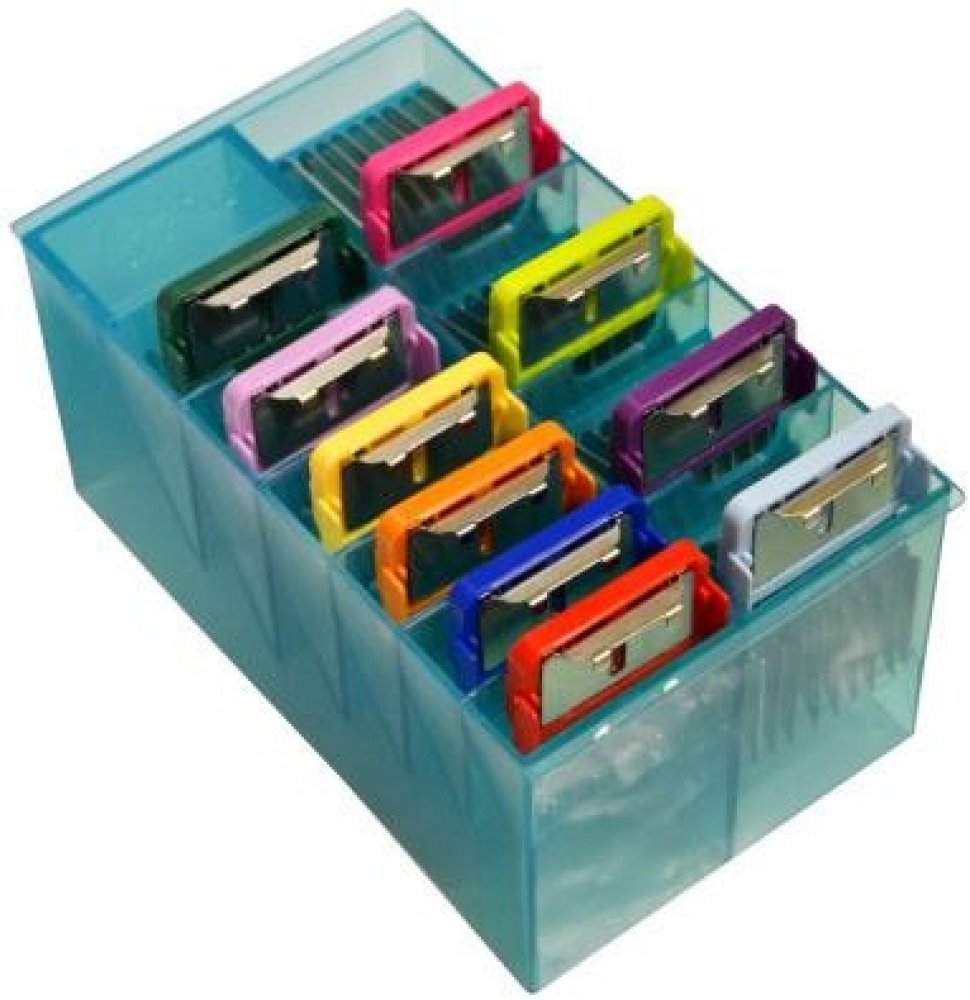 Sada náhradních plastových hřebenů s kovovými zuby. Velikost hřebenů je barevně rozlišená pro snadnou a rychlou orientaci. Hřebeny jsou určené pro strojky Oster 616-91, 616-50, 606-95, 97-44, 916-31, 956-31.Upozornění: Nástavce nejsou určeny pro vyholovací hlavice!!! (s.50,s.40,s.00000,s.0000,s.000)Velikosti: 1,6mm, 9,5mm, 13mm, 16mm, 18mm, 22mm, 25mm, 32mm, 38mm, 50mmPočet ks v balení: 10