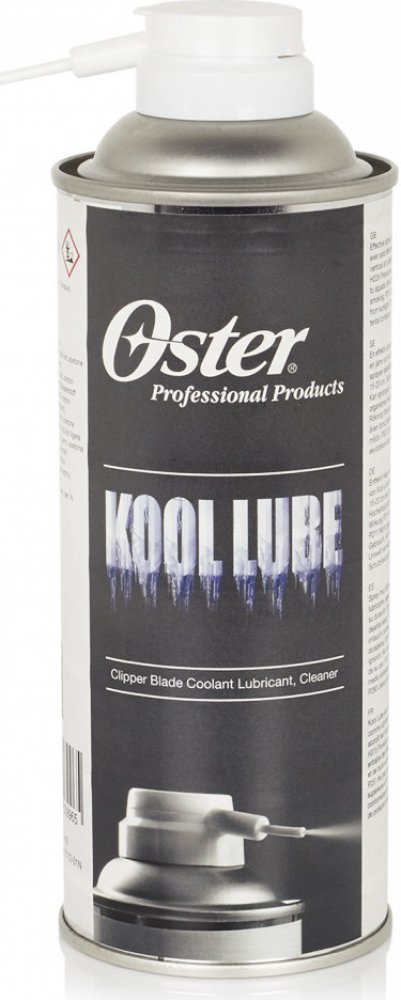 Chladící sprej OSTER KOOL LUBE má mírné mazací schopnosti, ale po aplikaci spreje doporučujeme stříhací hlavu vždy lehce namazat olejem na stříhací strojky.