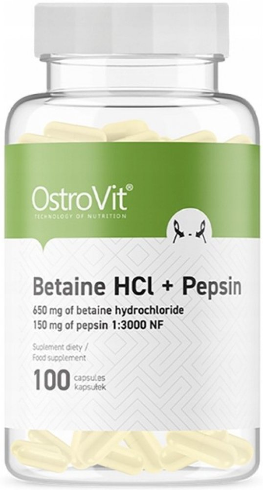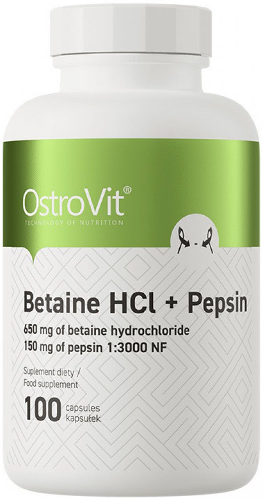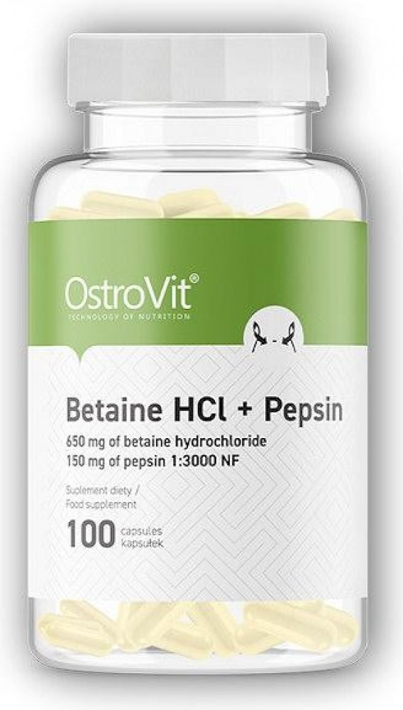 OstroVit Betaina HCl + Pepsin je doplněk stravy s vysokým obsahem pepsinu a betain hydrochloridu.