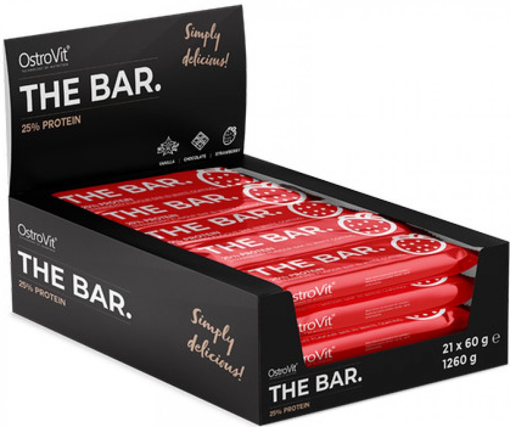 FANTASTICKÉ CHUTĚ OstroVit THE BAR. je vysokoproteinová tyčinka, která dokonale uspokojí vaši chuť na něco sladkého. Je to vynikající proteinová svačina, kterou si můžete vzít kamkoli s sebou. Dejte si ho do tašky nebo batohu, abyste si jeho lahodnou chuť mohli vychutnat i ve volném čase. OstroVit BAR. k dispozici ve třech lahodných variantách: čokoládové, vanilkové a jahodové. V závislosti na variantě byla tyčinka polévána tmavou nebo bílou polevou, která jí dodává charakter a dokonale zapadá do celku, čímž vytváří skutečný opus magnum mezi občerstvením. OstroVit BAR OstroVit THE BAR. je skutečným zážitkem pro každého. Jste nenasytní a milujete sladkosti? Nemohli byste chvíli vydržet, aniž byste mysleli na sladkosti, které jsou celým vaším životem? Nebo je pro vás důležitá vyvážená strava, kde je důležitý vysoký přísun bílkovin a nemůžete si dovolit naplnit kalorickou bilanci pouze prázdnými kaloriemi? OstroVit BAR. je nejen vynikající chutí, ale také zdrojem cenných bílkovin. Společnost OstroVit vytvořila proteinovou tyčinku, která spojuje milovníky svačin a sportovní nadšence, u nichž je vysoký přísun bílkovin tak žádoucí. Zapomeňte na ošizená jídla! Chytit OstroVit THE BAR. v ruce a sníst ho s vědomím, že jste udělali správnou věc. OstroVit BAR. je to náhrada jídla, kterou můžete jíst kdykoli a kdekoli chcete! Vlastnosti:Pro sportovce a milovníky sladkostí Vysoký obsah bílkovin Fantastické chutě Náhrada jídla kdekoli a kdykoli! Prostě ta tyčinka.POUŽÍVÁNÍ (1 dávka = 1 bar)Jednoduchá záležitost, stačí vybalit, najíst se a sáhnout po druhém :)SKLADOVÁNÍSkladujte na chladném a suchém místě