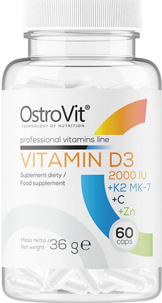 OstroVit Vitamin D3 2000 IU + K2 MK-7 + C + Zn je komplexní doplněk stravy, složky doplňku vám pomohou pečovat o vaše zdraví a imunitu. Díky jedinečnému výběru účinných látek od dnešního dne nemusíte užívat několik doplňků současně.