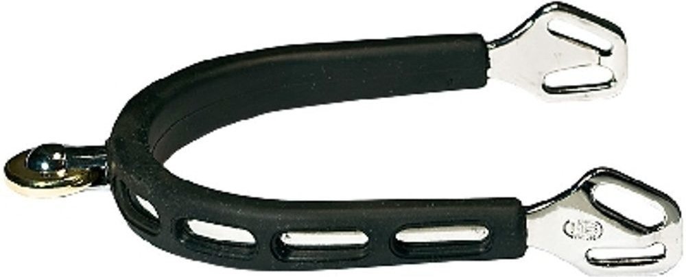Špičkové německé značkové ostruhy vyrobené z nerezové oceli zakončené jemným mosazným kolečkem pootočeném o 90st pro jednoduchý prokluz po koňském boku. Gumový potah na ramínkách zvyšuje přilnavost a ještě více chrání boty před poškozením.Komfortní provedení účinných ostruh. Délka 25 nebo 35 mm, Ultra fit provedení.