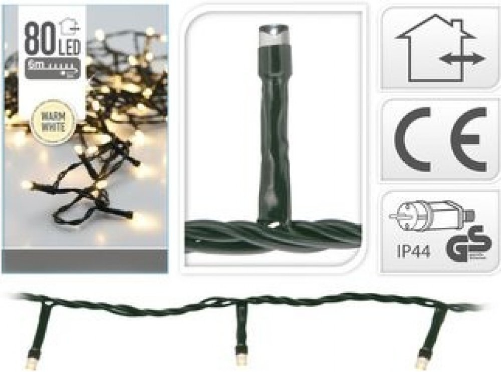 osvětlení vánoční 6m 80LED teplá BÍ venkovní AX8401010