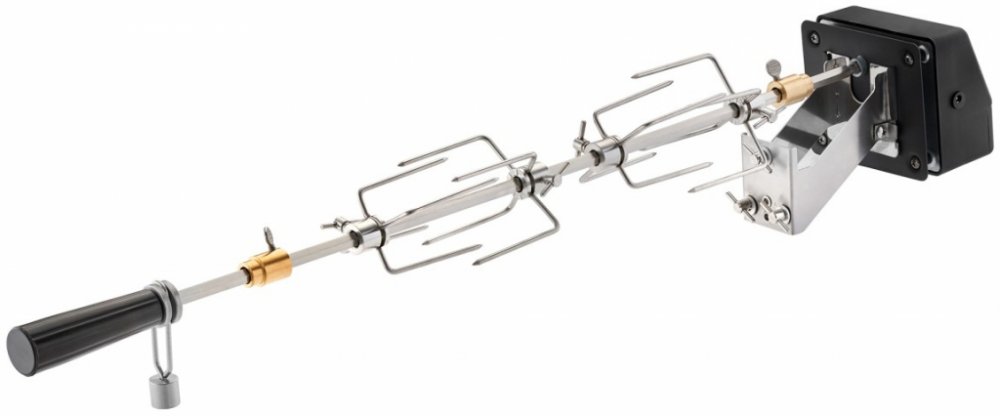 Otáčení špíz má 4 robustní držáky pro připevnění jídla k jehlici. Masivní šestihranný špíz je vyrobený z nerezové oceli a zatížitelný je maximálně 10 kg. Rychlost otáčení přibližně 3 otáčky za minutu rozdělí šťávu rovnoměrně uvnitř potraviny a zajistí křupavou kůrku na povrchu.