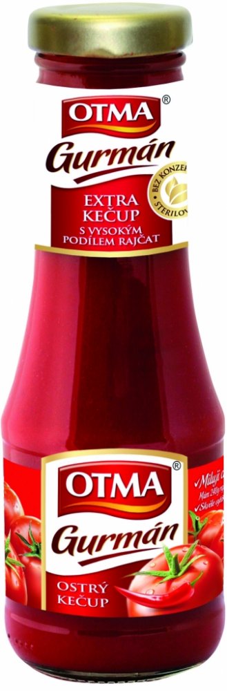 Otma Gurmán ostrý kečup je ideální pro opravdové gurmány a milovníky pikantních chutí. Na 100 g výrobku je použito 240 g rajčat, kečup tak má výraznou rajčatovou chuť, je extra hustý a snadno vytéká ze sklenice.