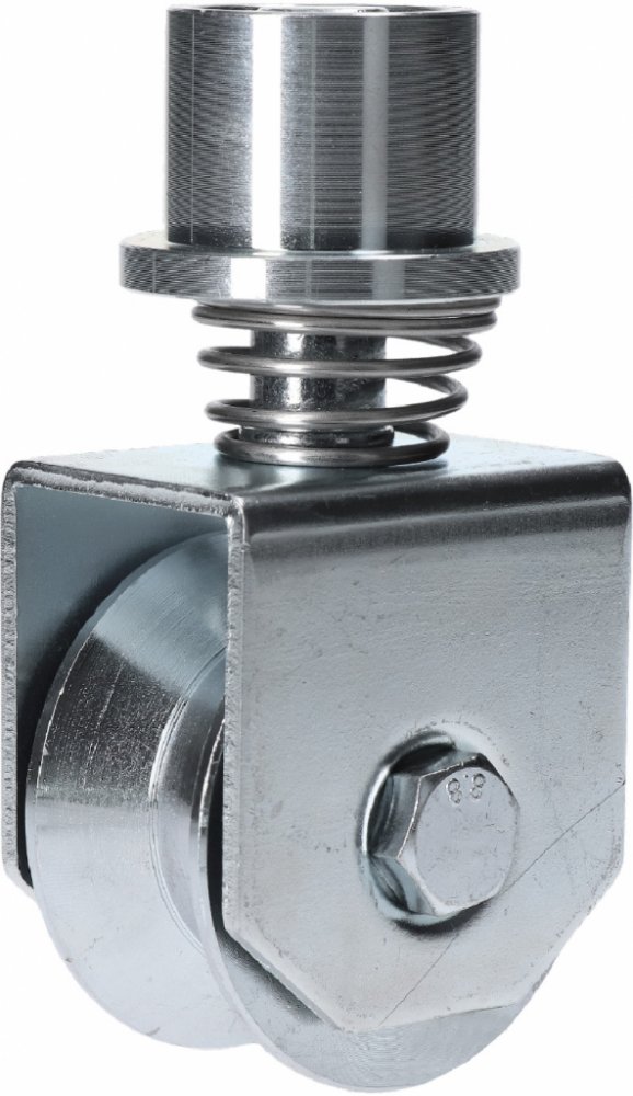 Otočné vodící kolečko použitelné pro U profily s ø20. Použitelný i pro obloukové vodící profily. Vodicí kolečko má drážku ve tvaru Y, čímž se sníží styčná plocha s obloukovým vodicím profilem a zajistí hladší přechod v případě, že je na vodicím profilu nános nečistot.