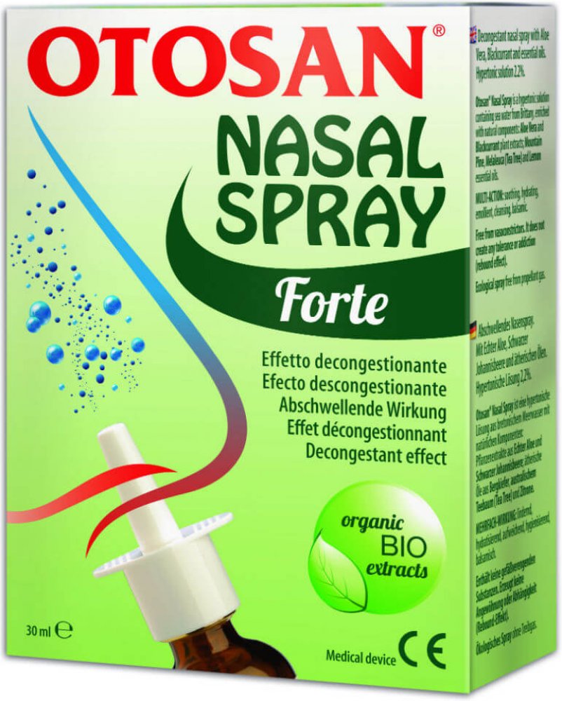 OTOSAN Nosní sprej Forte představuje přírodní a šetrnou alternativu pro uvolnění ucpaného nosu při rýmě, zánětu dutin nebo alergii. Obsahuje hypertonický roztok mořské vody (2,2 %) bohaté na minerály a stopové prvky, který napomáhá přirozenému odstranění přebytečného hlenu a zmenšení otoku sliznice. Rostlinné extrakty a BIO éterické oleje dodávají spreji osvěžující účinek, podporují dýchací komfort a regeneraci nosní sliznice. Sprej čistí nos a dutiny od prachu, pylu i nečistot z ovzduší a přináší okamžitý pocit úlevy. Je vhodný pro pravidelné i opakované použití bez rizika podráždění. Doporučuje se pro dospělé a děti od 12 let.