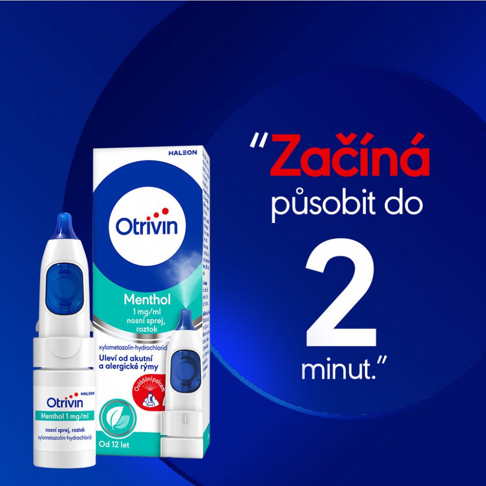 Otrivin Menthol 1 mg/ml snižuje nadměrné překrvení nosní sliznice, což rychle uvolní ucpaný nos. Otrivin