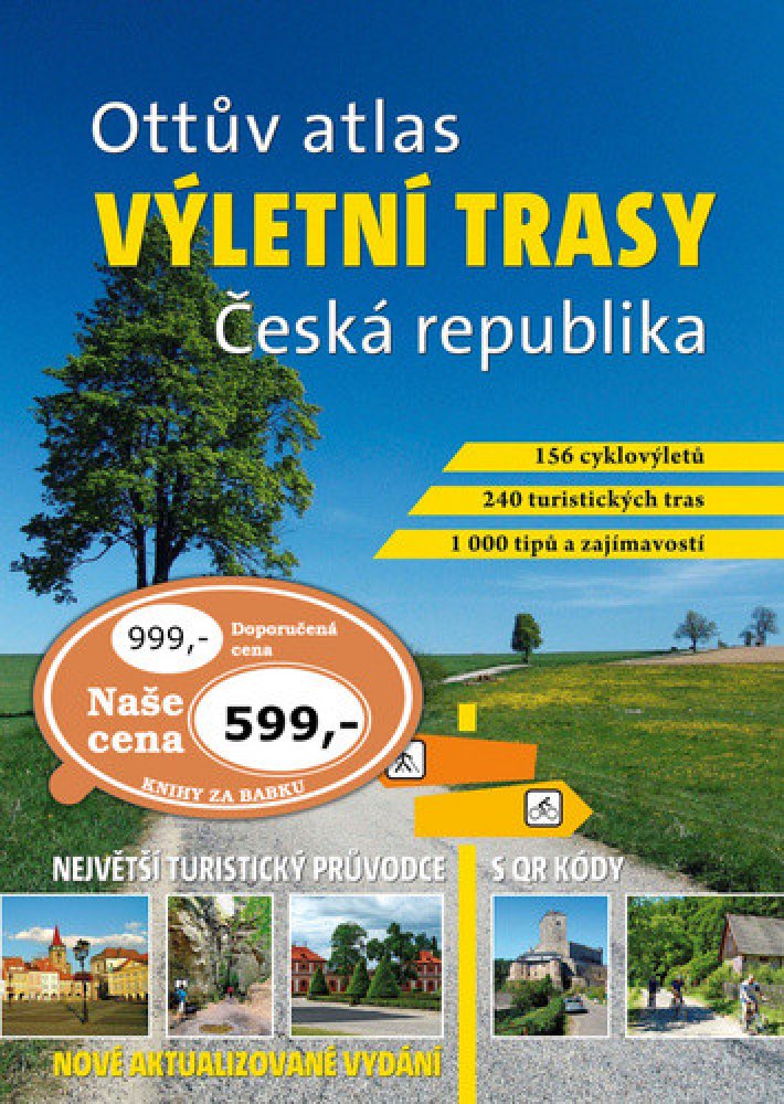 Unikátní vydání Ottova atlasu turistických tras se zaměřuje na nejkrásnější a nejzajímavější místa Čech, Moravy a Slezska včetně pohraničí, s přesahem do okolních zemí. Průvodce je na základě geografického klíče rozdělen do 12 oblastí, u každé se nabízí více než 20 atraktivních pěších a cyklistických výletů s popisem nejvýznamnějších přírodních a historických památek. Výletní trasy jsou navrženy tak, aby začínaly a končily v místech s dobrou návazností hromadné dopravy a případné občerstvení. Trasy jsou přehledně označeny a rozděleny podle náročnosti do čtyř stupňů a u každé je doplněn graf, z něhož je patrné celkové převýšení, všichni turisté si tak budou moci zvolit trasu, která nejlépe odpovídá jejich aktuálním možnostem. Každá trasa je opatřena stručnou charakteristikou výletu a popisem povrchu cesty, u cyklistických tras je vždy doporučen i vhodný typ kola. O památkách a zajímavostech včetně užitečných kontaktů a odkazů se stručně dočtete na konci každé trasy. Součástí výletů je také tip, na jehož základě si trasu můžete upravit dle vlastních přání či potřeb. Podrobná mapka zobrazuje vždy příslušný úsek, trasa je v něm barevně zvýrazněna. Přiložené fotografie dokládají atmosféru kraje a zachycují nejzajímavější cíle výletu. Zároveň kniha obsahuje QR kódy, které vám v pohodlí domova umožní načíst údaje o každé trase do vaší navigace či chytrého telefonu. Stačí si stáhnout gpx soubor, pomocí něhož se na svých výletech necháte vést.