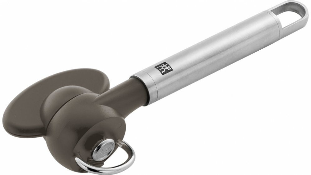 Otvírák na konzervy s nerezovou rukojetí a postranním mechanismem, díky němuž se samotný otvírák nikdy nedotýká obsahu konzervy. A navíc nezanechává ostré hrany.