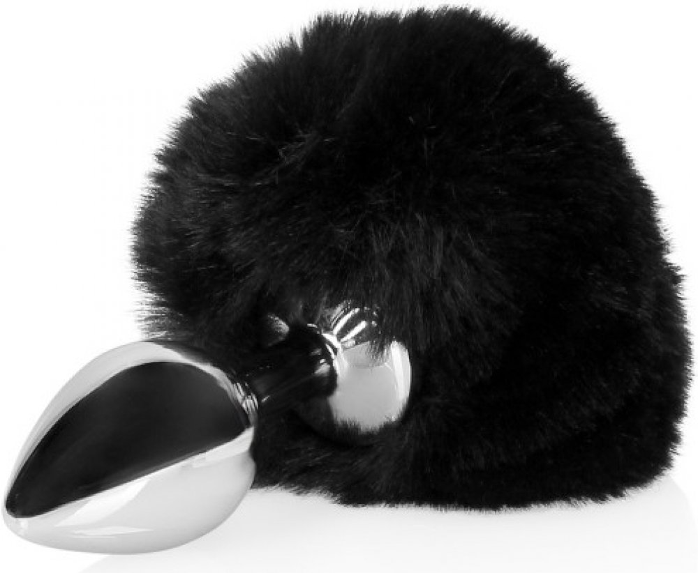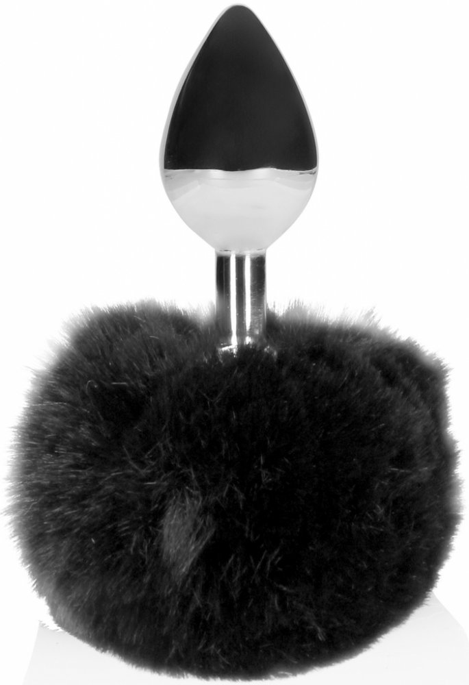 Ouch! Bunny Tail with Metal Butt Plug Black