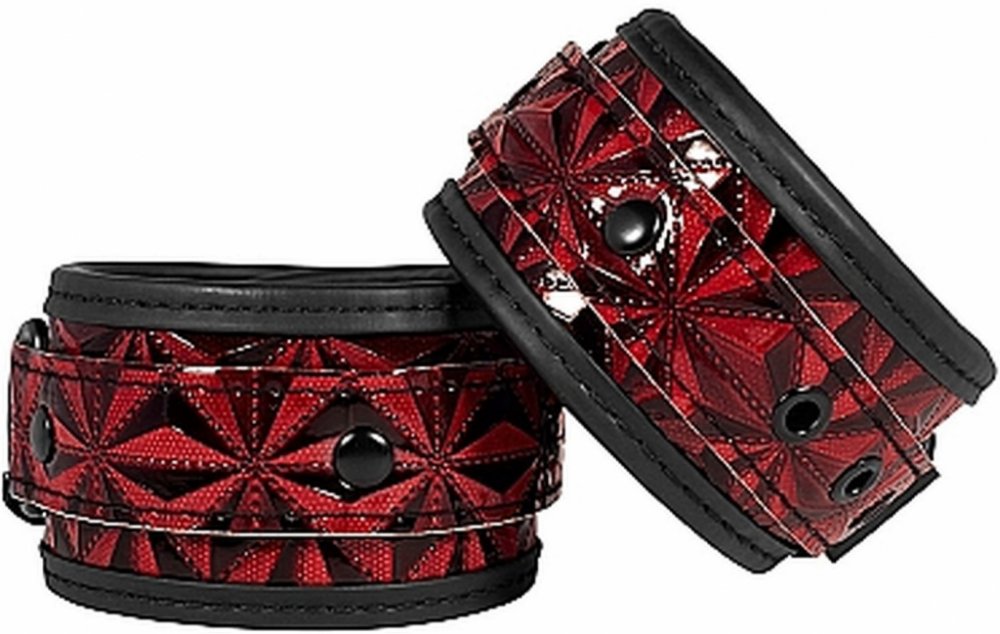 Ouch! Luxury Hand Cuffs Burgundy Pouta na zápěstí Czarny