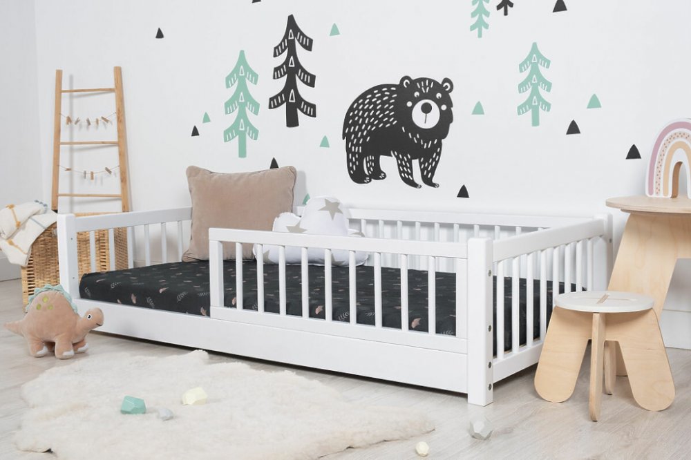 Předností této postele je její nízká výška. Dítě se tak může svobodně a bez asistence rodičů na postel vylézt nebo z postele odejít. Bezpečí zajišťuje také zábrana po obvo...