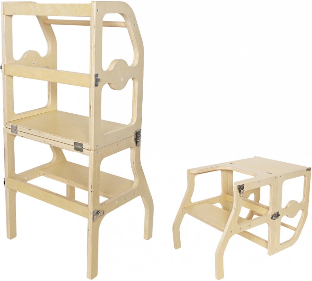 Skládací a ohýbatelná konstrukce: během okamžiku se promění z učící věže na stoleček se sedací plochou – ideální pro hraní, malování nebo svačinu.