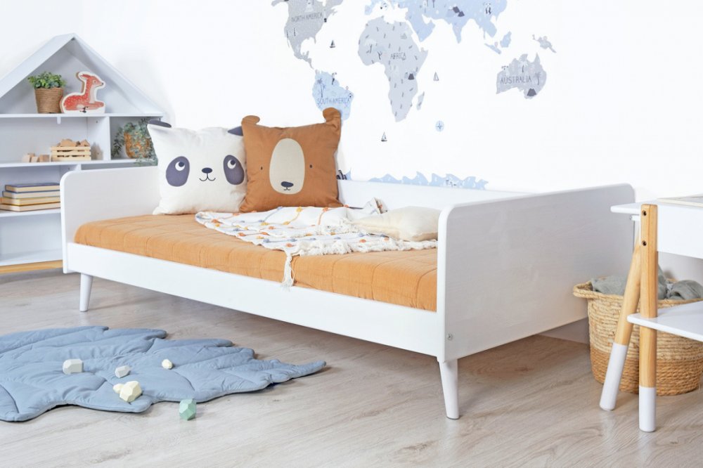 Stylová a multifunkční dětská postel Nell 2v1 v bílé barvě, je díky svému univerzálnímu vzhledu vhodná do pokojíčků pro kluky i pro holky.