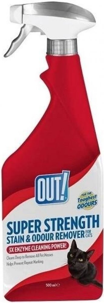 Super silný OUT! Odstraňovač zápachu a nečistot pro kočky neobsahuje dráždivé chemikálie a je čistě přírodní. Má 3x koncentrovanější složení než klasická verze. Odstraňuje i ty nejsilnější skvrny a zápachy po domácích mazlíčcích jako je moč, zvratky, výkaly. krev, hlína, tráva. Odstraňovač je vhodný na koberec, čalounění, tkaniny, dlaždice, vinyl a matrace. 3x koncentrovanější obsahuje přírodní Pro-Bacterie a enzymy účinně odstraňuje odolné skvrny a zápachy (moč, zvratky, výkaly, krev, hlína a tráva) čistě přírodní bezpečné používání kolem dětí i zvířat při dodržení návodu k použití pomáhá proti dalšímu značkování možné využít na předpírku nebo do strojů na čištění koberců vhodné povrchy: koberce, čalounění, tkaniny, dlaždice, vinyl, matrace účinné na nové i zašlé skvrny Návod k použití: Před použitím sprej protřepejte a otestujte reakci s barvou na málo viditelné části čištěného povrchu. Odstraňte možnou část nečistoty. Aplikujte sprej na znečistěné místo, aby byl povrch zcela nasycen tekutinou. Při čištění koberce aplikujte na 2x větší oblast kvůli možnému rozšíření nečistoty. Vyčkejte 10 minut než enzymy rozloží organické proteiny. Poté vysajte přebytečnou tekutinu tkaninou, která neobarví povrch. Nechte místo přirozeně uschnout (24 – 48h). Po uschnutí zmizí skvrny i zápach. Když místo uschne a pach přetrvává, pravděpodobně se prostředek nedostal ke zdroji zápachu. Aplikujte znovu v dostatečném množství, aby se tekutina dostala k místu původu zápachu. Stroje na čištění koberců: Extrémně znečištěná místa ošetřujte jednotlivě. Pro ostatní oblasti přidejte 40 ml na každý 1 l čistící tekutiny na koberce. Ošetření textilu před praním: Aplikujte na postiženou oblast a nechte působit 5 minut před praním. Varování: Vyvarujte se kontaktu s očima. Při zasažení proplachujte oko vodou 15 minut, při přetrvání problému vyhledejte lékařskou pomoc. Skladujte prostředky mimo dosah dětí a domácích mazlíčků. Čistič je nevhodný na kožené a vlněné povrchy!