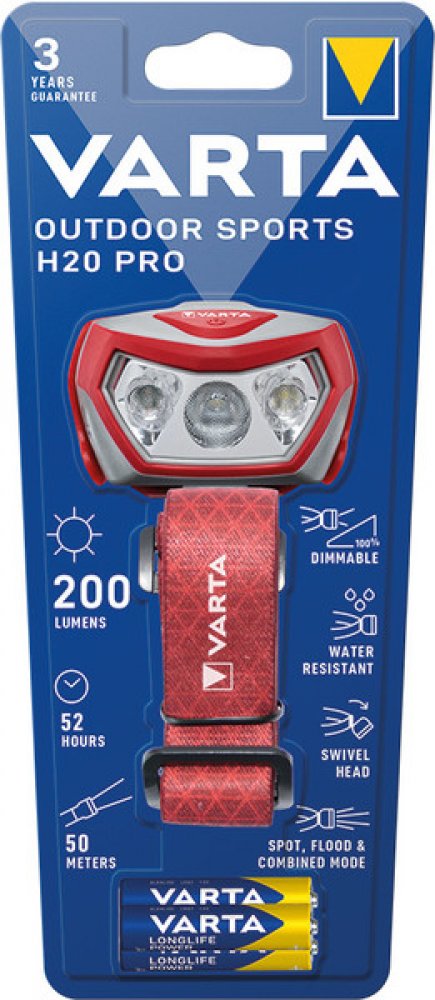 Odolnost vůči nárazu (test pádem ze 2 m),Voděodolné (IPX4),Výkyvná hlava pro ideální osvětlení,"Spot, to flood" funkce a funkce stmívání pro nastavení intenzity světla,Červená LED,Indikátor slabé baterie,Světelný tok 200 lumenů,Doba provozu 52 hodin,Dosvit 50 m