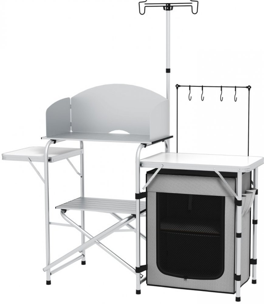 RYCHLÁ A SNADNÁ MONTÁŽ: Díky skládacímu rámu a vkládacím prvkům lze kuchyň sestavit během několika minut a bez nářadí. Vše se vejde do praktické brašny, takže si to můžete snadno vzít kamkoli – ideální pro kempování