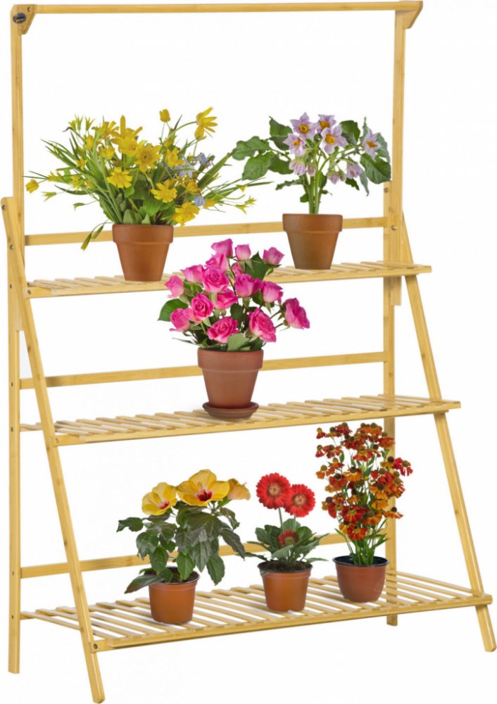 Máte rádi květiny, ale nemáte doma dostatek místa? Tato třípatrová je elegantní dekorací do interiéru i na zahradu. Květinové schodiště vám pomůže ušetřit místo a nabízí dostatek prostoru pro různé rostliny. Kvalitní bambusový materiál vnese do vašeho domova kousek přírody. Díky svému provedení je velmi vhodný pro venkovní použití, protože voda z něj tak dobře odtéká. Jedná se o praktický stojan na rostliny, který si nemůžete nechat ujít!