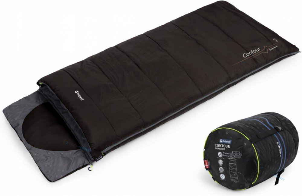 Dekový spací pytel OUTWELL Contour Supreme 190 L s odnímatelnou kapucí, na které je pro komfortnější spaní integrovaný polštář. Spacák můžete zcela rozevřít a použít jako teplou deku. Materiál je příjemný na dotek, o izolaci se stará dvouvrstvá výplň z dutého vlákna Isofill.