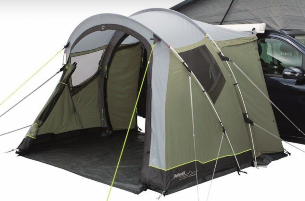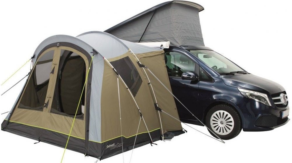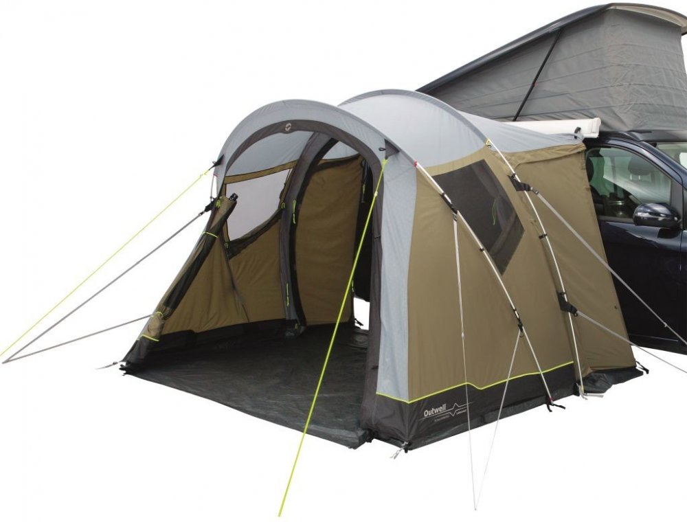 Předstan nevyžaduje velký prostor a je velmi skladný a lehký. Díky dvěma lehkým hliníkovým tyčovým obloukům se postaví v několika jednoduchých krocích. Vícenásobná síťovaná okna se závěsy na zip zajišťují dobrou ventilaci. V prostoru zámku jsou protilehlé boční vchody, které umožňují přístup k dodávce a stanu.