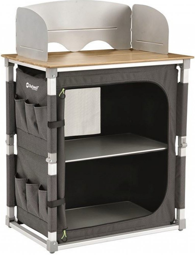 Kuchyně Outwell Padres splní všechna očekávání. Můžete zde připravovat jídlo na velké ploše z bambusového dřeva nebo zde grilovat. K tomu skvěle poslouží zástěna. Kuchyně Padres od značky Outwell nabízí velkou pracovní plochu, která je zároveň prostorem pro gril se zástěnou a spoustu úložného prostoru, kapes a háčků na uložení a zavěšení veškerého vybavení. Pracovní deska je vyrobena z bambusovéh...
