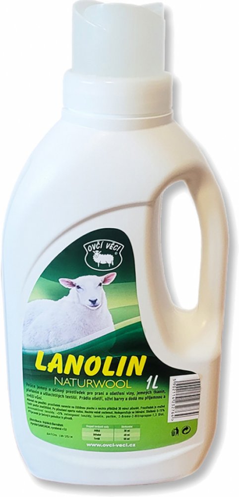 Lanolín je speciální prací prostředek na vlnu a jemné textilie. Chrání Vaše prádlo z přírodní vlny, přírodního vlasu, pletené zboží, jemné textilie, povlečení, deky, záclony, ručníky i teplé revmatické prádlo Díky obsahu lanolinu čistí jemně a důkladně, nemění tvar ani barvu prádla, dezinfikuje. Prádlo svěže voní. Lanolin je šetrný k pokožce, pH hodnota chrání vaše ruce i vaše textilie. Výrobek ne...