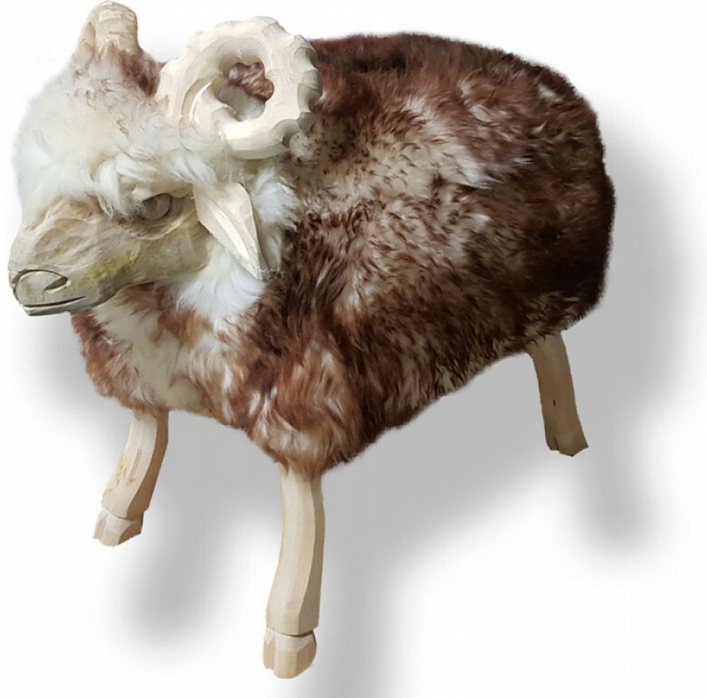 Stolička beran je vyřezaná z bukového dřeva a potažená na sedací části pravou ovčí kožešinou. Každý kus je originál – barevnost kožešiny se snažíme klientovi přizpůsobit. Foto ilustrační, může se mírně lišit.