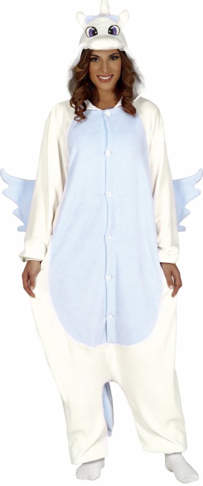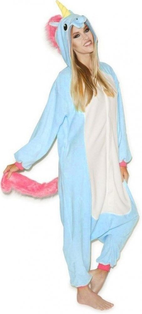 Kostým jednorožec bílo-modrý kigurumi pyžamo overal.