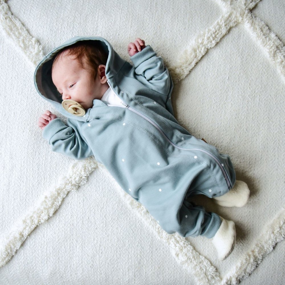 Overal na zip puntíkatý modrý
