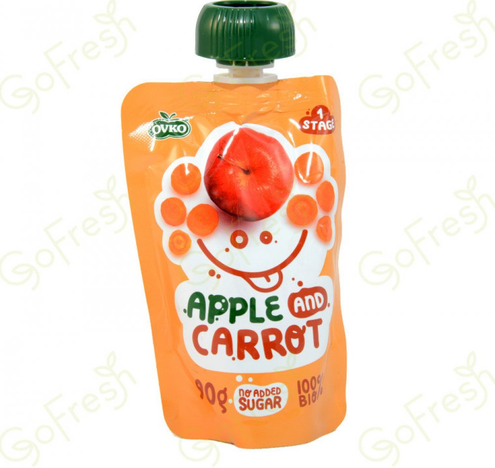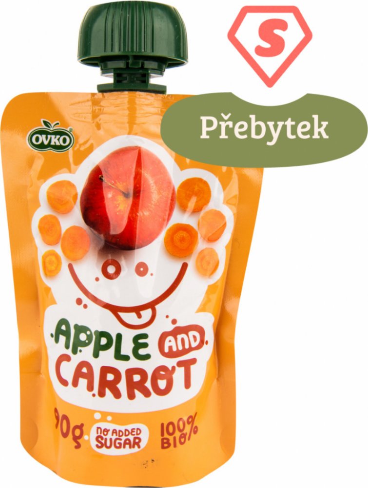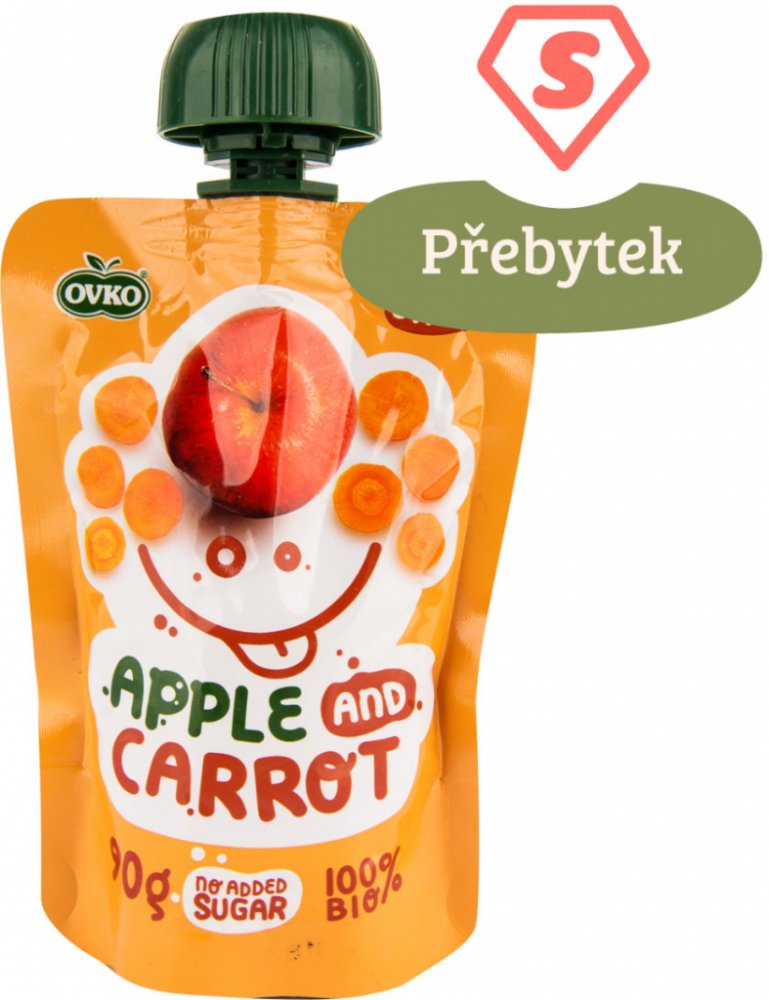 Příkrm obsahuje směs z jablek a mrkve. Díky praktickému skladnému balení s dávkovačem je vhodný na cesty. Příkrm je bez přidaného cukru, bez lepku a neobsahuje konzervační látky, aromata ani umělá barviva. Nejsou v něm živočišné ingredience, proto si na něm pochutnají i malí vegetariáni či vegani. Zasytí a výborně chutná.