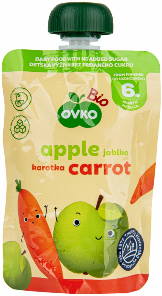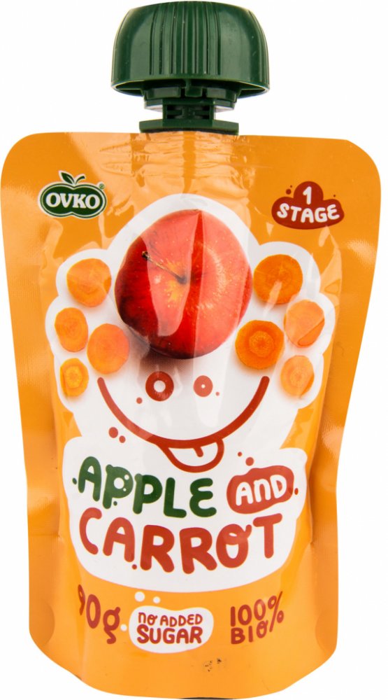 Rychlý a zdravý příkrm z jablek a mrkve v biokvalitě, bez zbytečných přídavných látek. Svačinka vhodná pro kojence od ukončeného 6. měsíce věku.