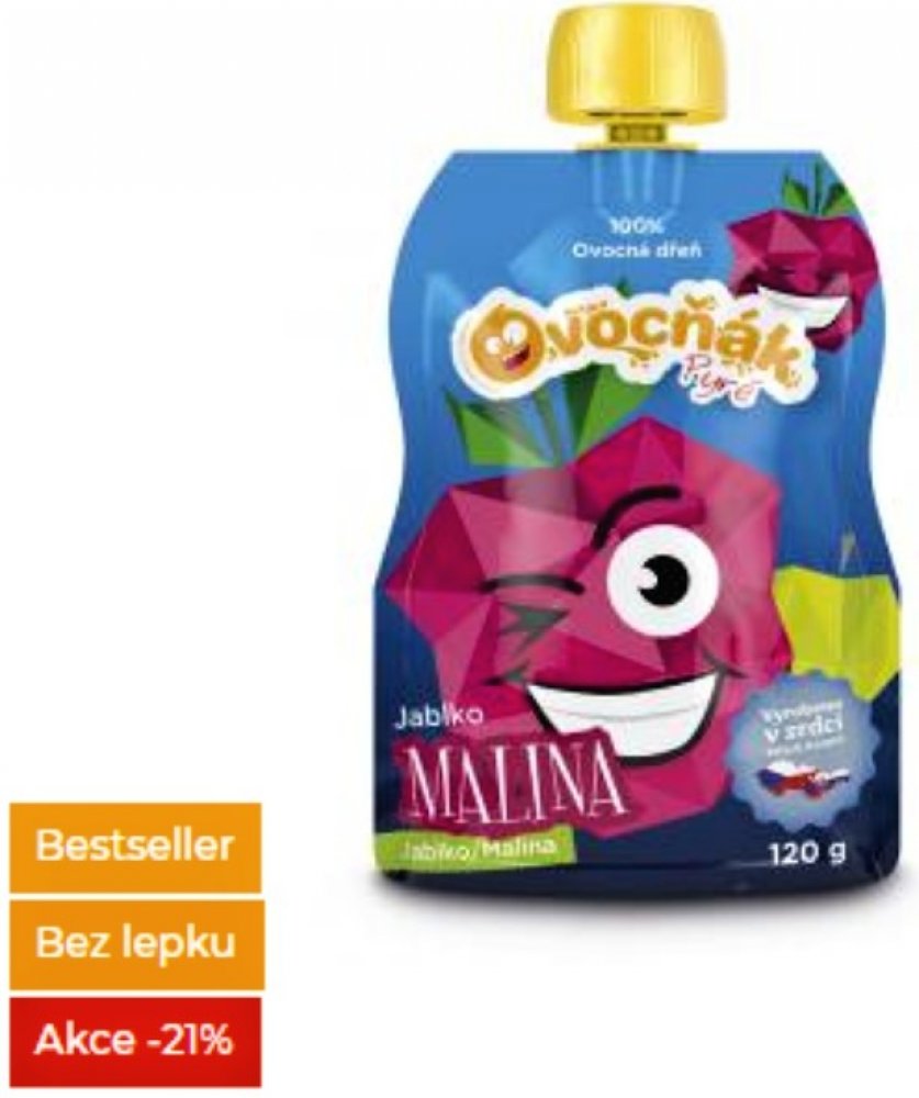 SLOŽENÍ: jablečná dřeň 80 %, malinová dřeň 20 %.
