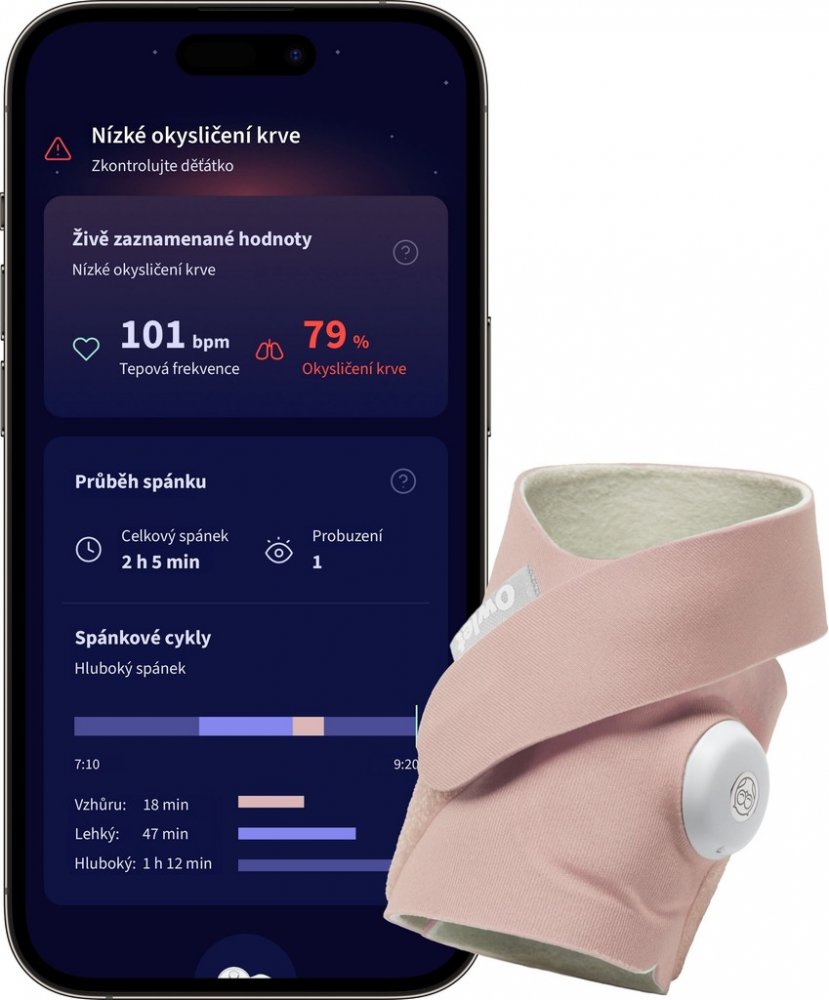 kolem nohy dítěte a poskytuje monitorování pulsu, hladiny