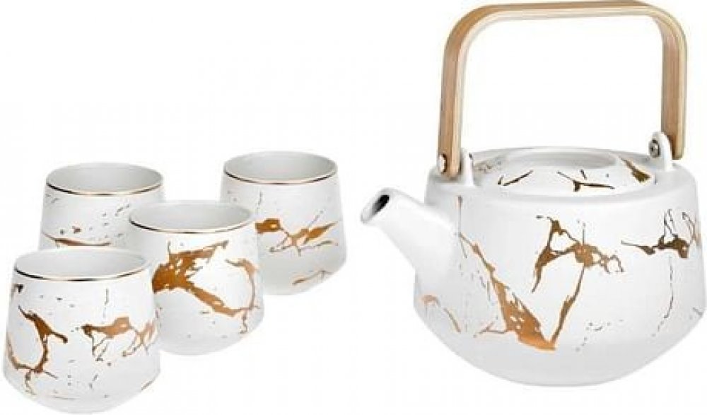 Tato čajová sada od MIAMIO obsahuje konvičku o objemu 1 l, 4 šálky 300 ml a 4 dřevěné podtácky. Moderní matný design z něj dělá ideálního společníka pro společenské chvíle s přáteli a rodinou. Odolná keramika konvice a integrované sítko z nerezové oceli zajišťují čistý a chutný čaj bez zanechání zbytků. Dřevěné podtácky jsou praktickým doplňkem, který chrání povrchy vašeho stolu. Konvice: Kapacita: 1000ml / Výška: 15,5 cm / Materiál: keramika a bambus Šálky: Kapacita: 300ml / Výška: 7 cm / Materiál: keramika a bambus Nevhodné do myčky nádobí