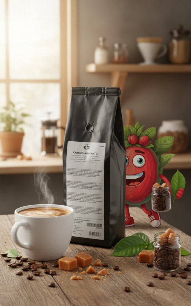 Pražená zrnková káva aromatizovaná (100% arabika) s aroma karamelu s nádechem smetany.