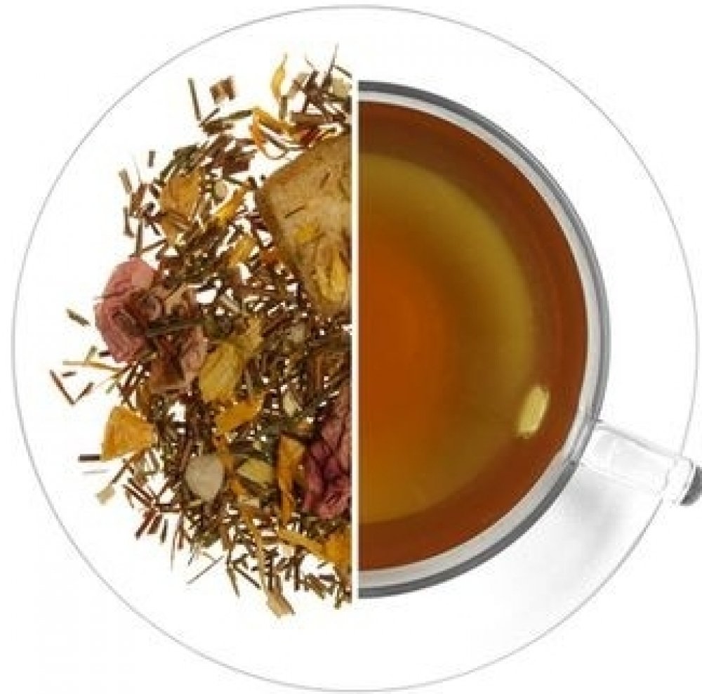 Složení: zelený bio rooibos (min.76,8%), banán (banán, med, cukr, banánové aroma, kokosový olej), aroma, meloun (meloun, kyselina citrónová), maracuja, měsíček, pivoňka. Může obsahovat stopy suchých skořápkových plodů.