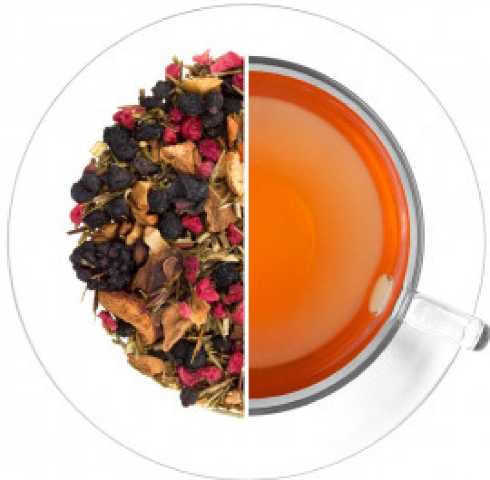 Složení: rooibos zelený (51,5 %), černý bez plod, kousky jablek, aroma, kousky malin, černý rybíz. Může obsahovat stopy skořápkových plodů.