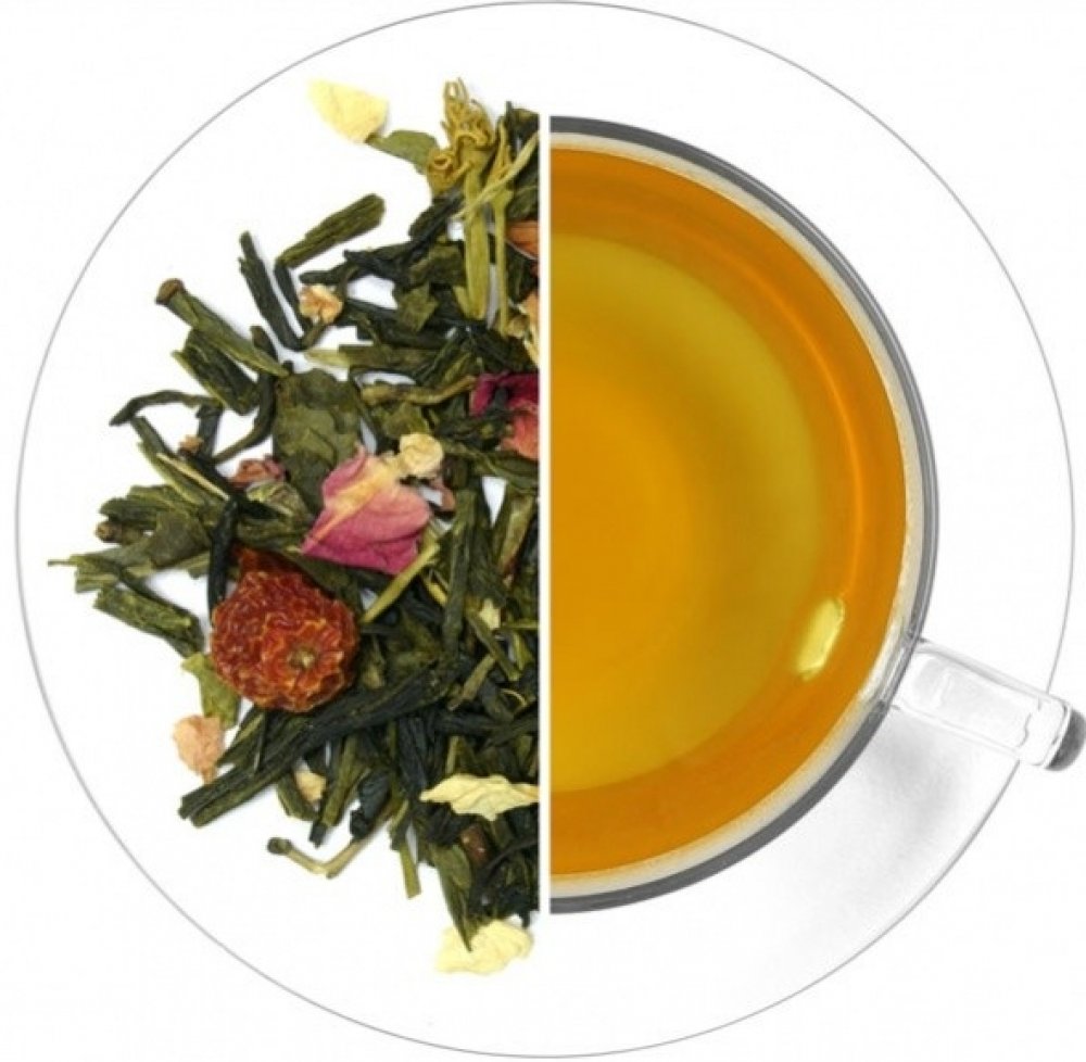 Složení: pravý zelený čaj Sencha a China Jasmin s květy, třešně (třešně, cukr, slunečnicový olej), šípek, aroma, jasmín, pivoňka, růže. Může obsahovat stopy suchých skořápkových plodů. Příprava: vodou o teplotě 70-80°C zalejte čaj v poměru 1,5 dl na 1 čajovou lžičku. Pokud čaj louhujete v konvici, pak navíc 1 lžičku na konvici. Ponechte 2-3 minuty louhovat. Poté přeceďte.