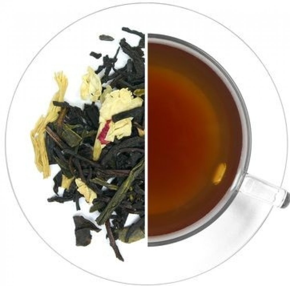 Složení: pravý černý čaj, pravý zelený čaj Sencha, aroma, jasmín, růže, slunečnice. Může obsahovat stopy suchých skořápkových plodů.