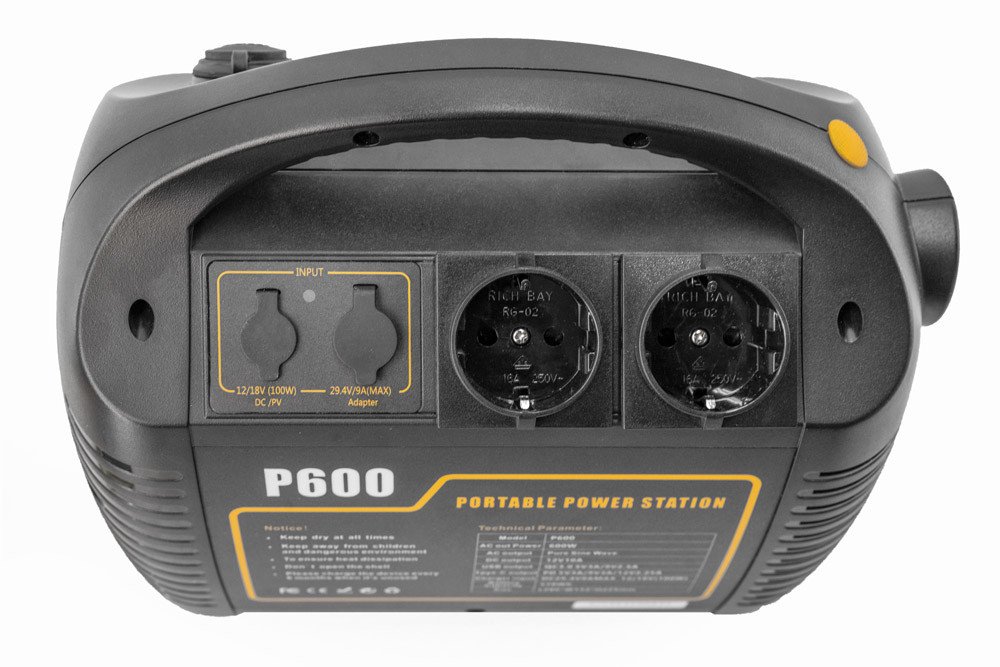 OXE Powerstation P600 je venkovní, přenosná, multifunkční, dobíjecí elektrocentrála 600W/578Wh. Uvnitř powerstation se nacházívysokokapacitní Lithium-ion baterie s vysokým výkonem pro dlouhodobý provoz. Nízká hmotnost(5,9kg) předurčuje bateriový generátor pro použití na cestách, při campingu, na zahradě a kdekoliv jinde,kde nejste v dosahu elektrické sítě. Díky různým typům výstupů lze elektrocentrálou dobíjet většinu elektronických zařízení. Elektrocentrálu lze dobít pomocí síťového adaptéru, autonabíječkou nebo solárním panelem.Pro snadné přemístění slouží úchyt v horní části nabíjecí stanice. Pro bezpečné a komfortní přemístění kabelů je k elektrocentrála OXE P600 zdarma brašna.
