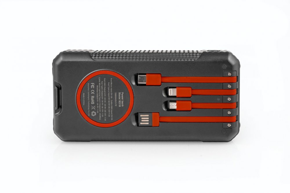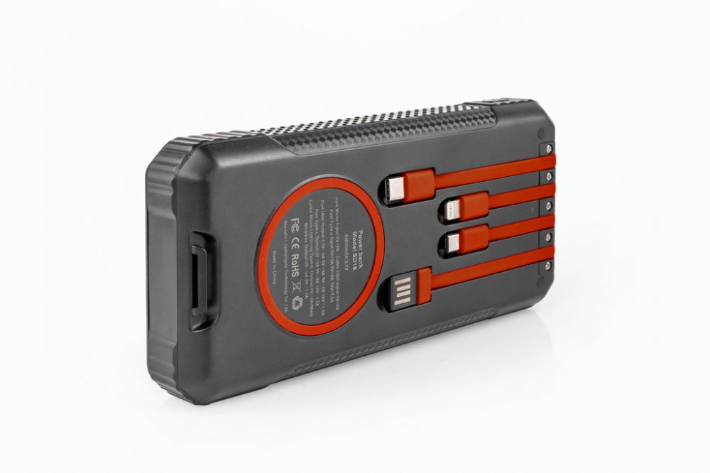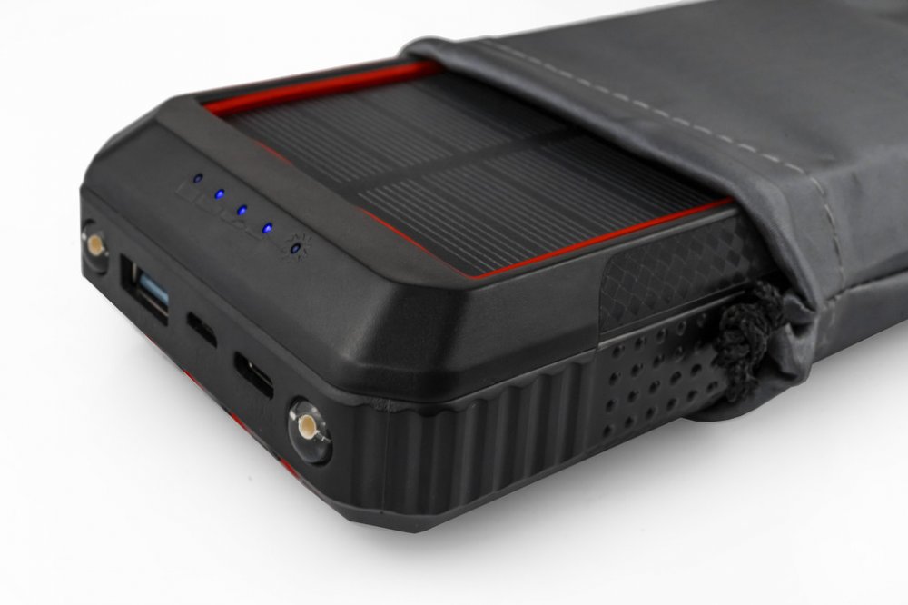 Jedná se o lehkou, přenosnou, multifunkční avysokokapacitní solární powerbanku, která je kompatibilní s většinou elektronických zařízení (dokáže nabíjet šest zařízení současně). Powerbanka má integrovanou lithium-ion baterie s kapacitou 33 800 mAh. Pomocí Powerbanky lze elektronická zařízení dobíjet i bezdrátově. Powerbanka má integrované čtyřikabelys různými konektory (micro USB, USB Type C, USB aLightning). V horní části se nacházejítři porty, a toType C pro vstup / výstup, micro USB pro vstup a USB pro výstup. Stav nabití Powerbanky je signalizován pomocí čtyř diod, které znázorňují různé stupně jejího nabití. Na powerbance se nachází další dvě signalizační diody, z nichž jedna signalizuje bezdrátové nabíjení, druhá signalizuje dobíjení powerbankysolárním panelem.