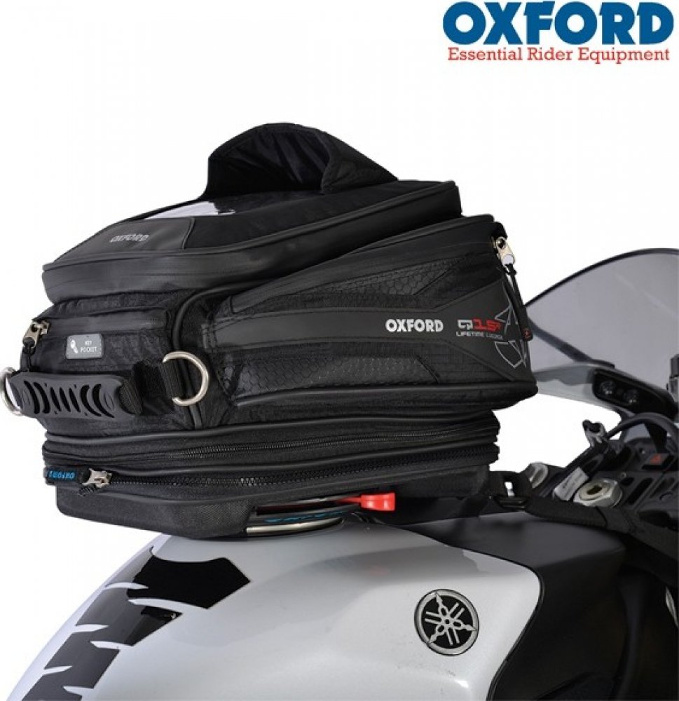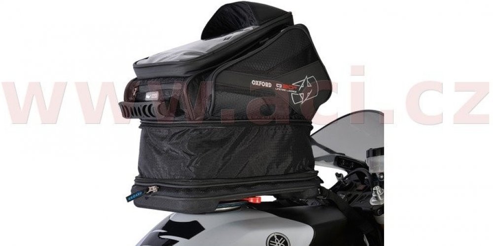 - Kotevní adaptéry pro kotvení zavazadla k vybraným značkám a modelům motocyklů jsou součástí nabídky doplňkového příslušesntví rychloodepínacích zavazadel OXFORD.