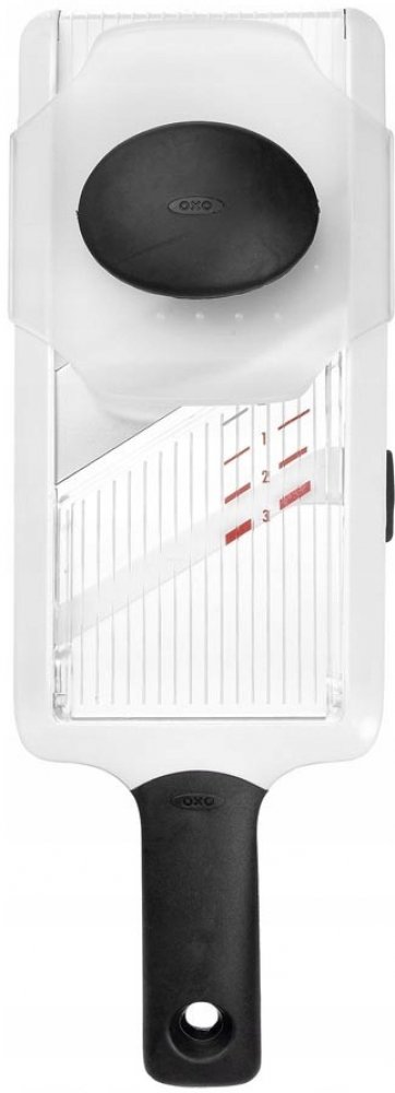 • Kráječ OXO zajišťuje efektivní přípravu plátků o tloušťce 1, 2,5 nebo 4 mm.