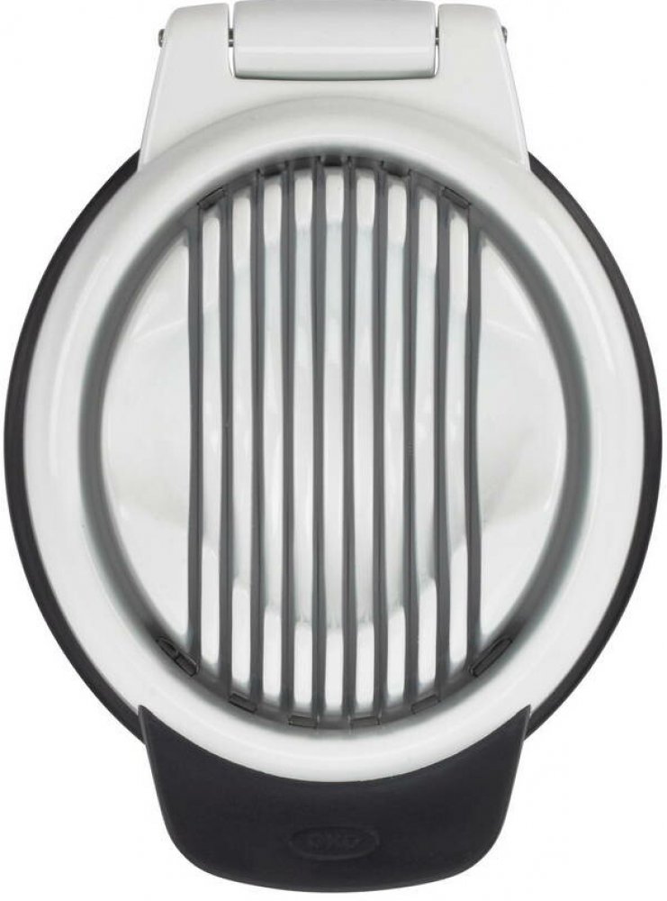 Klasický kráječ na vajíčka OXO z kolekce Good Grips. Jedním pohybem nakrájí vajíčka na stejně silné plátky. Variabilní lůžko pro krájení vajíčka podélně i na šířku. Plastová základna má protiskluzovou úpravu. Rukojeť má praktický vyvýšený tvar pro jednoduché stlačení i zvedání. Kráječ na vajíčka lze mýt v myčce nádobí.